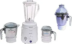 Sujata 900 Watt Mixer Grinder, White 4 Jars, Acrylonitrile Butadiene Styrene (ABS)